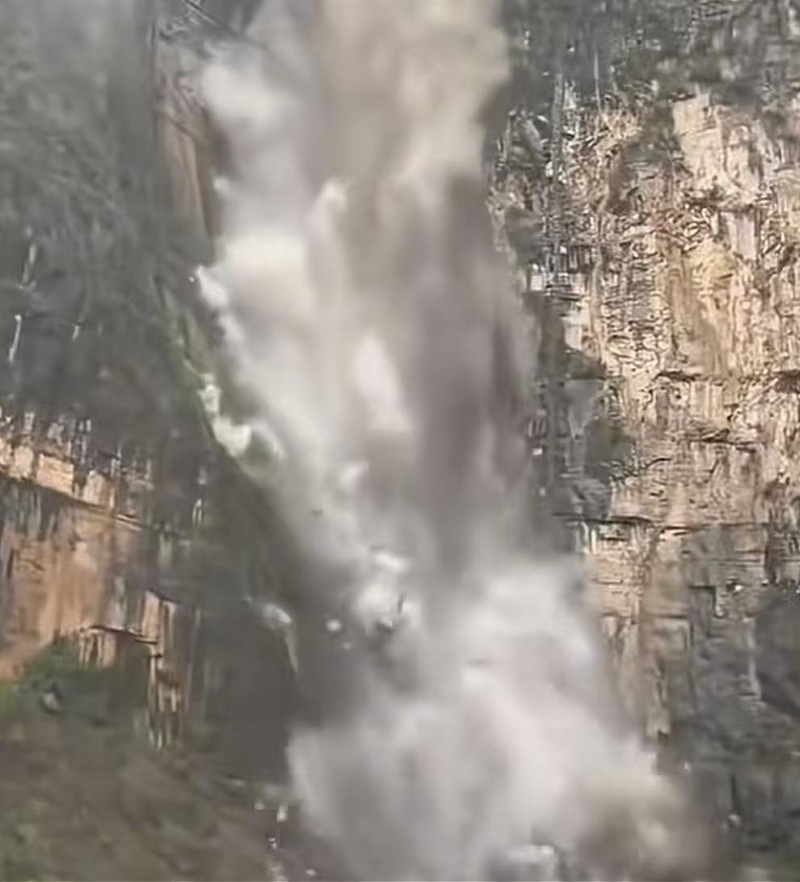 有网友发视频称,云台山景区发生山体滑坡。视频画面显示,山体上的碎石纷纷掉落,现场弥漫大量灰尘。